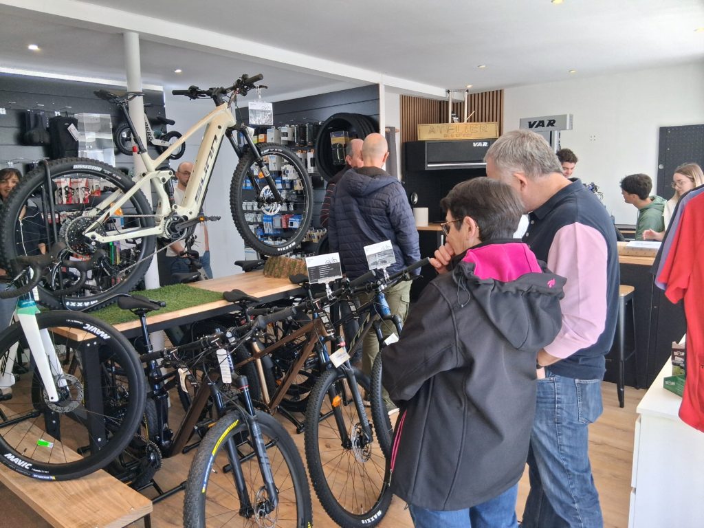 Dans son espace entièrement réaménagé pour l’occasion, Tristan propose une gamme variée de vélos de la marque SUNN. Les clients peuvent y découvrir plusieurs modèles d’exposition, allant des vélos de route aux VTT, disponibles en versions musculaires ou électriques. Soucieux de la qualité, il privilégie du matériel français, robuste et fiable.