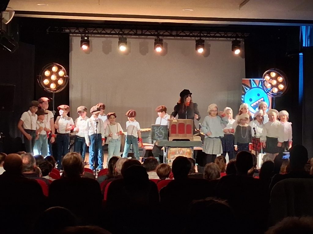 Mais avant cela, ce sont les élèves de l’école de Lax; eux aussi habillés en titi parisien pour l’occasion, qui ont eu l’honneur de réaliser la première partie. L’artiste Kiki (Christine Demichelis) avait eu pour mission d’apprendre quelques titres parisiens d’avant guerre aux écoliers laxois et surtout de les accompagner à l’orgue de barbarie.