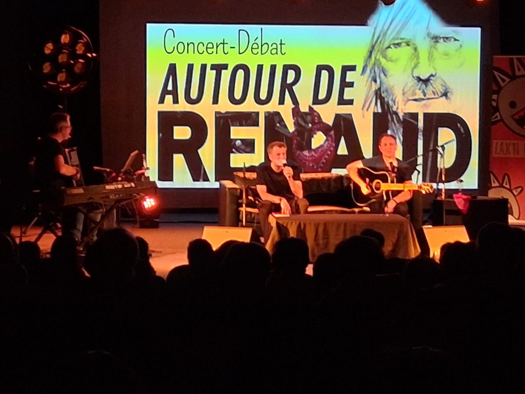 Les “mauvais garçons” d’apparence (en référence à l’un des titres qu’ils ont interprétés » ont ensuite laissé la place aux protagonistes du spectacle phare de la soirée. Une grande partie du répertoire intarissable de Renaud a été ainsi passée en revue : » Le HLM, Dès que le vent soufflera, Laisse béton , Mistral gagnant, Morgane de toi,Manhattan Kaboul… « n’en sont que quelques maigres exemples. Les extraits régulièrement entrecoupés de commentaires et d’extraits vidéos ont permis aux spectateurs venus en nombre de tout savoir sur la vie de l’artiste. La soirée s’est même terminée par des échanges entre le public et la scène.